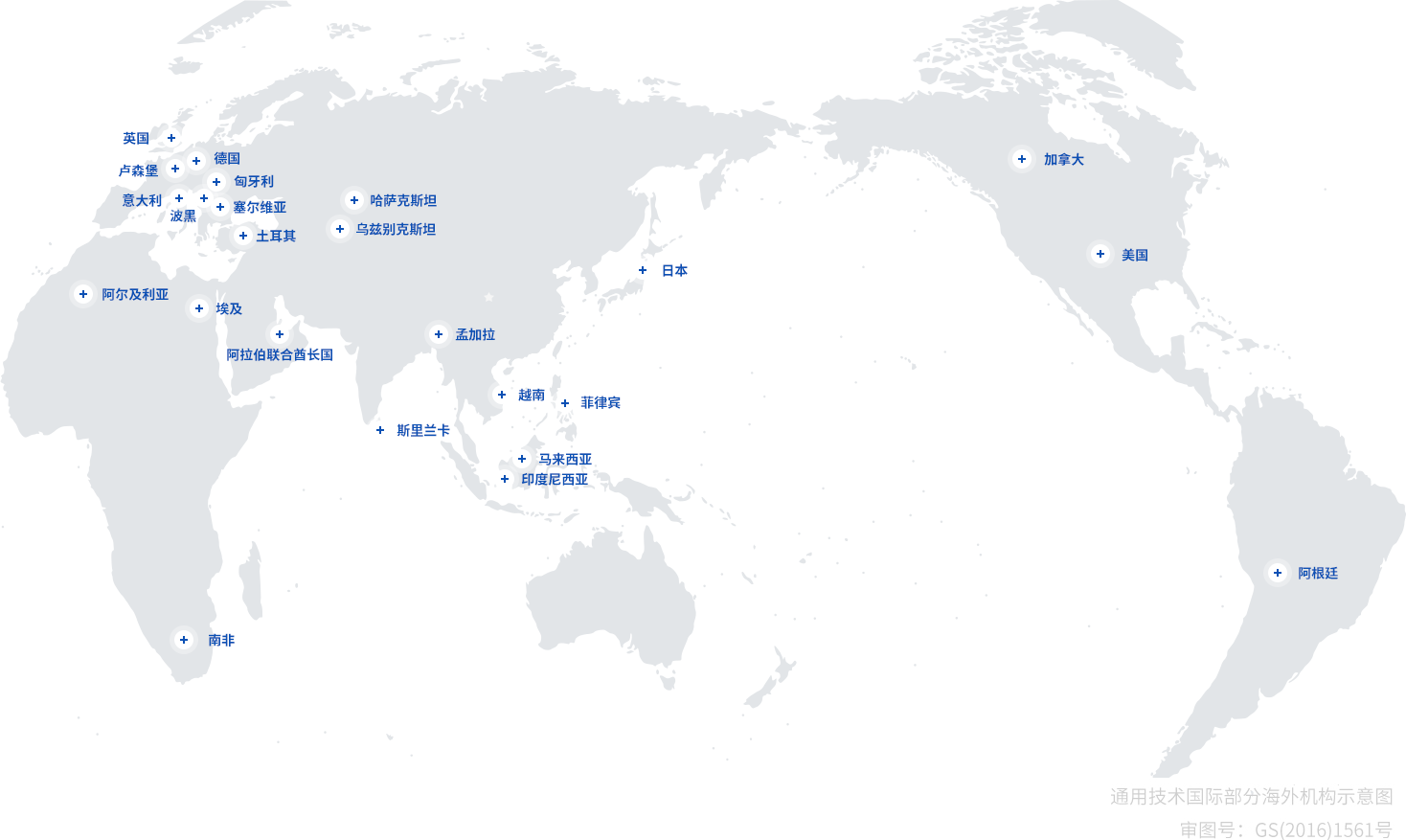 國際通用 通用技術(shù)國際致力于服務(wù)全球市場(chǎng),在世界范圍內(nèi)廣泛尋求合作,構(gòu)建了覆蓋面廣、反應(yīng)迅速的國際市場(chǎng)經(jīng)營網(wǎng)絡(luò),公司業(yè)務(wù)遍布五大洲的100多個(gè)國家和地區(qū)。